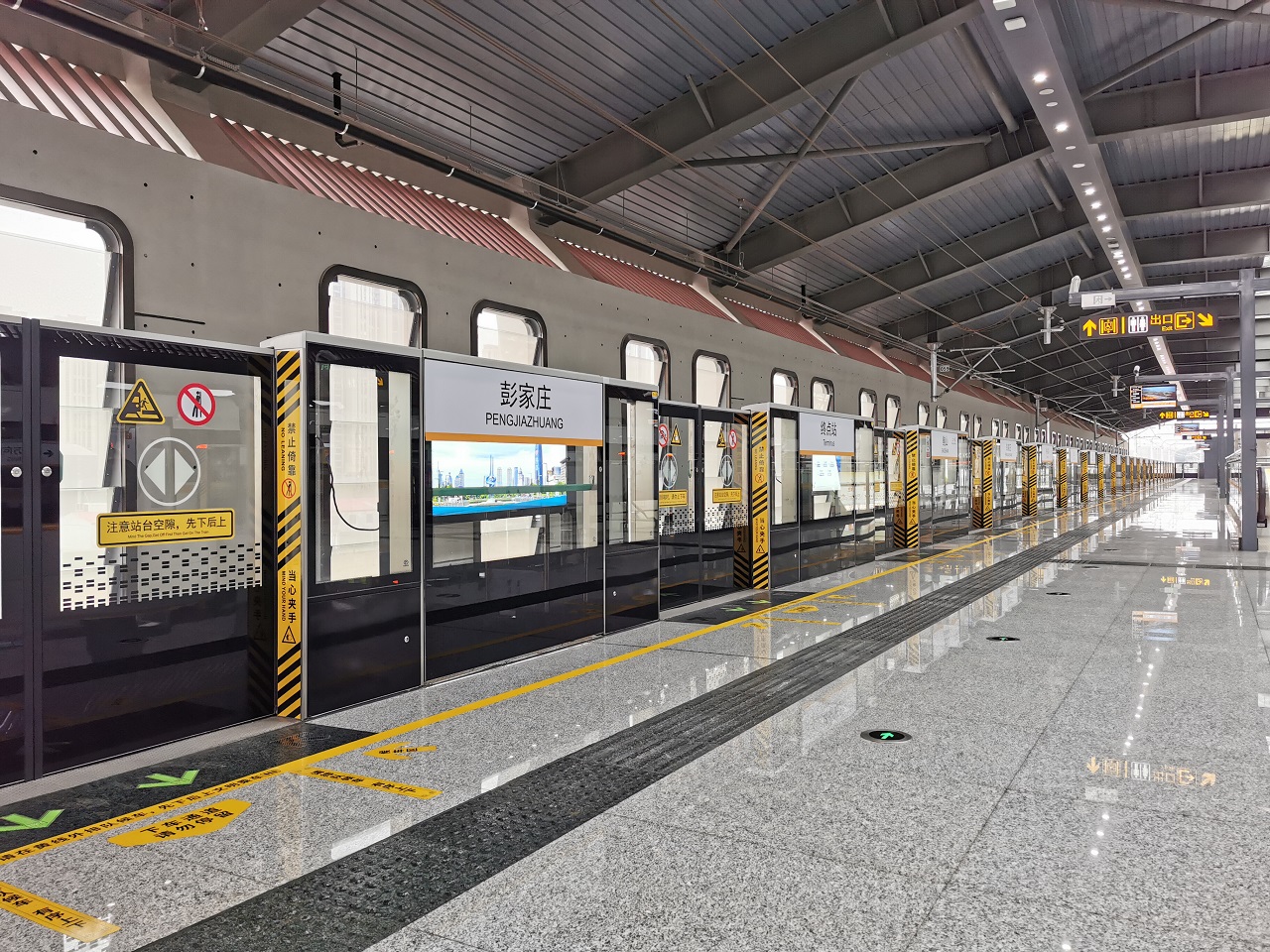 濟南R2線一期18座地下車站共36側設置全高可調通風型站臺門系統,1座高架車站共2側設置半高站臺門系統。