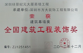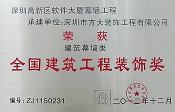 “全國建筑工程裝飾獎”是國家住房和城鄉建設部批準設立的中國建筑裝飾行業的最高榮譽獎,由中國建筑裝飾協會主辦評選,每兩年評選一次。此次深圳市方大裝飾工程有限公司一舉獲得四項“全國建筑工程裝飾獎”,突顯了方大幕墻在建筑裝飾行業設計與施工水平等方面的優勢,反映了方大裝飾公司在企業管理、技術實力、質量保證體系等方面的實力。