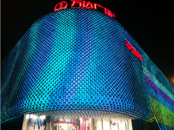 武漢漢街萬達(dá)廣場(chǎng)項(xiàng)目被譽(yù)為萬達(dá)集團(tuán)旗下最奢華、最獨(dú)具匠心設(shè)計(jì)、最能代表萬達(dá)藝術(shù)品位和最具文化內(nèi)涵的項(xiàng)目。項(xiàng)目總建筑面積13.58萬平方米,外幕墻面積3.3萬平方米,幕墻造價(jià)過億。4萬余個(gè)內(nèi)嵌LED燈飾的不銹鋼金屬球和鋁板幕墻構(gòu)成整個(gè)建筑流暢、動(dòng)感的外立面,其獨(dú)特、大膽、華麗的外觀設(shè)計(jì)給幕墻施工帶來的非常大的挑戰(zhàn),許多幕墻企業(yè)望而生畏。方大裝飾公司憑借20多年深厚的技術(shù)功底,在高難度的施工中科學(xué)規(guī)劃、精心實(shí)施、穩(wěn)步推進(jìn),獨(dú)創(chuàng)菱形鋁板幕墻單元技術(shù)實(shí)現(xiàn)鋼結(jié)構(gòu)與鋁板及不銹鋼球的單元整體吊裝,加上針對(duì)雙曲鋁板幕墻的三維坐標(biāo)測(cè)量放線等先進(jìn)的安裝誤差控制手段,確保了施工質(zhì)量、安全與進(jìn)度,短短五個(gè)月成就該項(xiàng)目外觀立面最華麗、夜景效果最絢麗等中國之最。