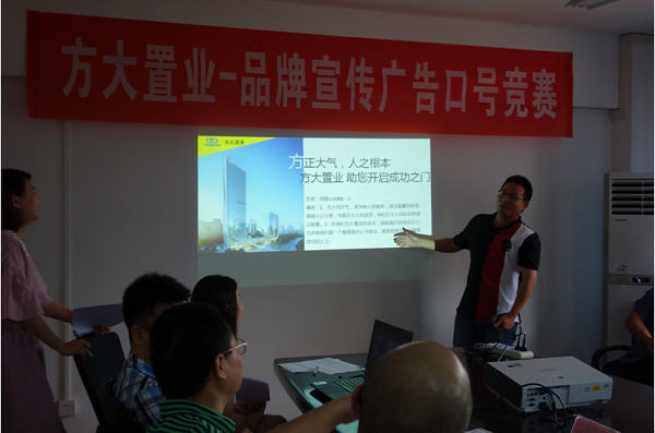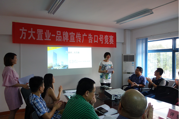 7月16日,方大置業(yè)“品牌宣傳廣告語口號競賽”活動決賽在方大廣場綜合樓三樓會議室舉行。經(jīng)過三周時間的征稿、作品展示、初選、復選,最終選出了十篇優(yōu)秀作品進入決賽。方大置業(yè)總經(jīng)理及相關(guān)領導、辦公室和營銷策劃部負責人擔當本次決賽評委。