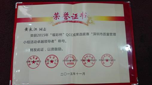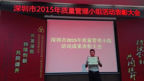 深圳市2015年質量管理小組活動優秀成果、優秀企業和先進個人獎是由深圳市質量協會、深圳市總工會、共青團深圳市委員會、深圳市婦女聯合會和深圳市科技技術協會聯合審定,旨在表彰在2015年深圳市質量管理小組活動中涌現出的優秀企業、QC小組和個人。