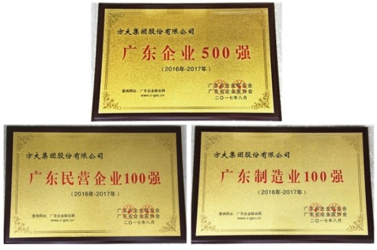 83日,廣東省企業聯合會、廣東省企業家協會發布了2016-2017年廣東企業500強排行榜,方大集團股份有限公司再次入選榜單,同時獲評“廣東民營企業100強”、“廣東制造業100強”。