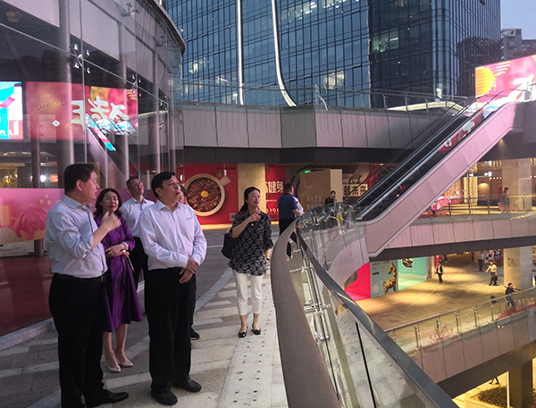 熊建明對周關一行的到來表示熱烈歡迎,并陪同周關一行參觀了方大集團新的總部大樓及特色商業區,介紹了方大集團發展概況及方大城的整體規劃、建設、招商等相關情況。周關充分肯定了方大城的建設情況及方大集團的發展成績,并寄望方大集團利用現有產業優勢,不斷取得企業發展新的更大的成就。