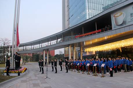 28日晨,集團(tuán)總部以及駐深公司各部門經(jīng)理及以上管理人員聚集到方大城,舉行升旗儀式。7時(shí)零2分,國旗和方大旗伴隨著日出冉冉升起,激昂的國歌在每個(gè)人耳邊奏響,為方大集團(tuán)的二十八周年紀(jì)念日帶來祝福。集團(tuán)創(chuàng)始人、董事長熊建明講話,回顧了二十八年來的奮斗與拼搏,對每一位為公司做出貢獻(xiàn)的員工表示感謝,并希望大家繼續(xù)努力,為公司美好的明天再創(chuàng)輝煌。