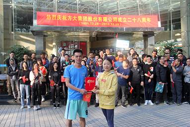 2019年12月28日,是方大集團(tuán)股份有限公司成立二十八周年紀(jì)念日。為熱烈慶祝這一重要節(jié)日,公司舉辦了升旗儀式、“悅動(dòng)方大”積分賽以及晨跑等系列活動(dòng),廣大員工踴躍參與。