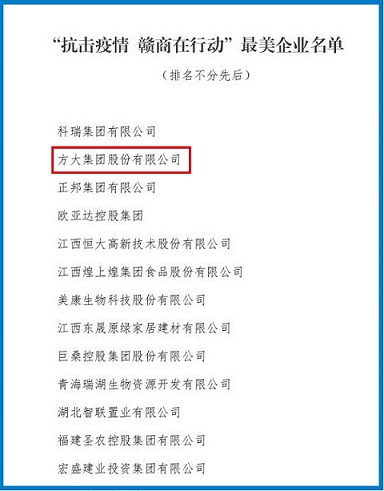 方大集團榮獲“抗擊疫情 贛商在行動”最美企業稱號